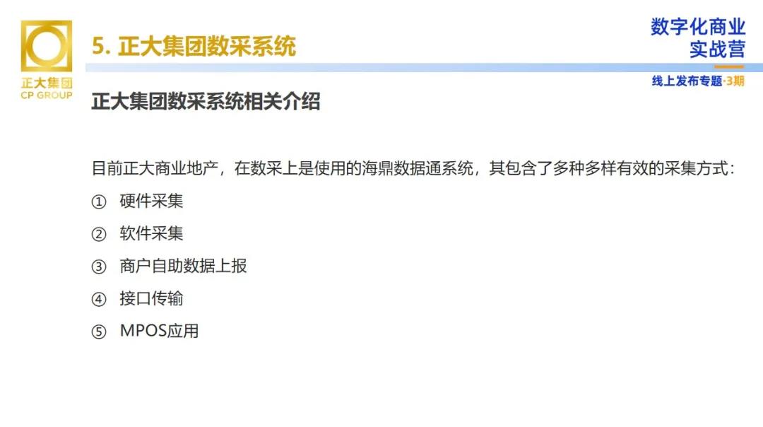 向陽(yáng)先生表示,目前正大商業(yè)使用的是海鼎數(shù)據(jù)通系統(tǒng),這其中包含了多種有效的采集方式,如:硬件采集、軟件采集、商戶自助數(shù)據(jù)上報(bào)、接口傳輸、MPOS應(yīng)用等。