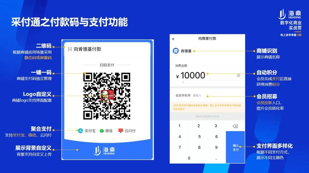 這套系統(tǒng)的好處是可以將數(shù)采全面覆蓋到整個(gè)商業(yè)運(yùn)營(yíng)中,比如:當(dāng)硬件采集、軟件采集都不適用的情況下,標(biāo)準(zhǔn)的接口傳輸就派上了用場(chǎng),它可以直接對(duì)接到商戶收銀系統(tǒng)進(jìn)行數(shù)據(jù)匯總;另外,在面對(duì)沒(méi)有收銀系統(tǒng)的微小商戶時(shí),海鼎科技為正大商業(yè)打造的MPOS就派上用場(chǎng)了。