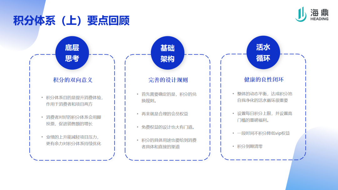 同時,海鼎科技也可以遵循已經(jīng)形成閉環(huán)的邏輯和理論,利用已有的會員營銷類產(chǎn)品,協(xié)助企業(yè)和項目進行積分體系的搭建、實施和具體實踐,使積分體系的打造更上一層樓。