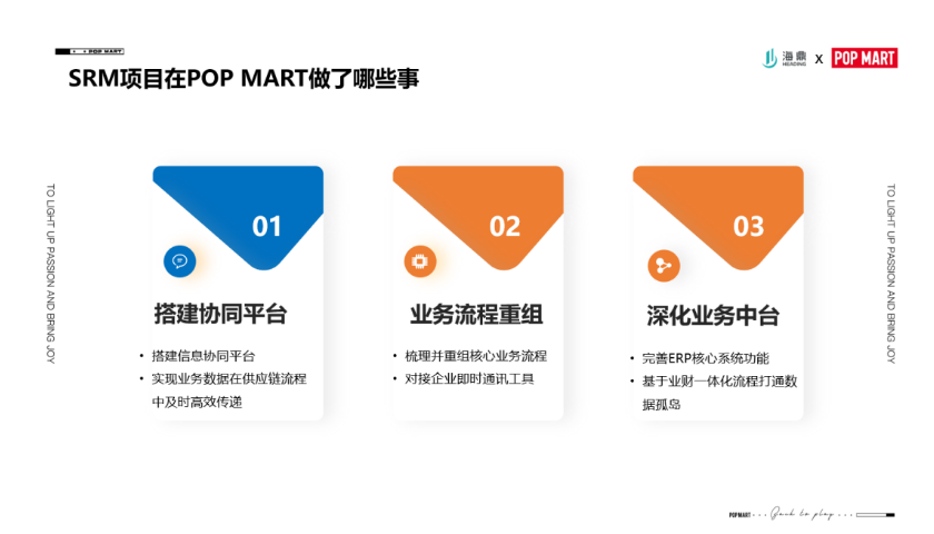 今年年初的時候,海鼎的汪路路總來了一次泡泡瑪特,當(dāng)時我把痛點跟他聊了一下,他就說海鼎有一款產(chǎn)品叫SRM,通過這個契機(jī),我們就把這個項目啟動起來了。
