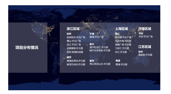 近年來,開元商管秉承著提升商業(yè)價值,創(chuàng)造美好生活的企業(yè)使命,堅守專注、增值、共贏的經(jīng)營理念,憑借對扎根城市發(fā)展趨勢的深刻理解和敏銳洞察,精心策劃并實施了精準(zhǔn)的戰(zhàn)略布局,專注于深耕新興區(qū)域。從浙江,到上海,再到河南,開元商管通過精心運(yùn)營“開元廣場、開元里”等多條差異化產(chǎn)品線,深深扎根城市,精準(zhǔn)滿足所在區(qū)域的客群需求,項目覆蓋杭州市、湖州市、寧波市、嘉興市、衢州市、開封市、蘇州市、上海松江區(qū)、上海青浦區(qū)等多個城市、區(qū)域。