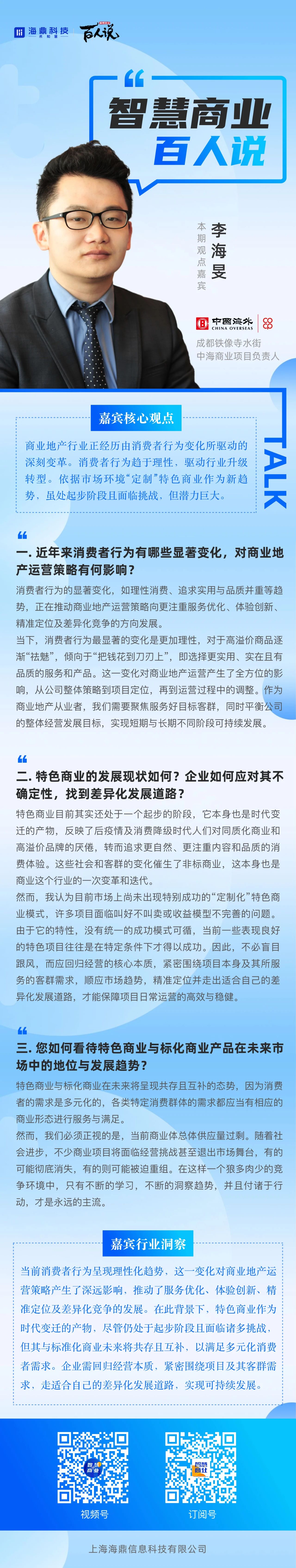 智慧商業(yè)百人說 | 成都鐵像寺水街李海旻:趨于理性的消費(fèi)者正在驅(qū)動行業(yè)升級轉(zhuǎn)型