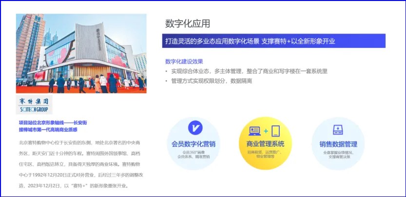 ?多業(yè)態(tài)整合與靈活管理?:靈活的多業(yè)態(tài)應(yīng)用數(shù)字化場(chǎng)景將商業(yè)和寫字樓整合在一套系統(tǒng)內(nèi),同時(shí)實(shí)現(xiàn)了權(quán)限劃分和數(shù)據(jù)隔離。這一創(chuàng)新舉措不僅提升了管理效率,還為賽特+的業(yè)務(wù)拓展提供了更多可能性。