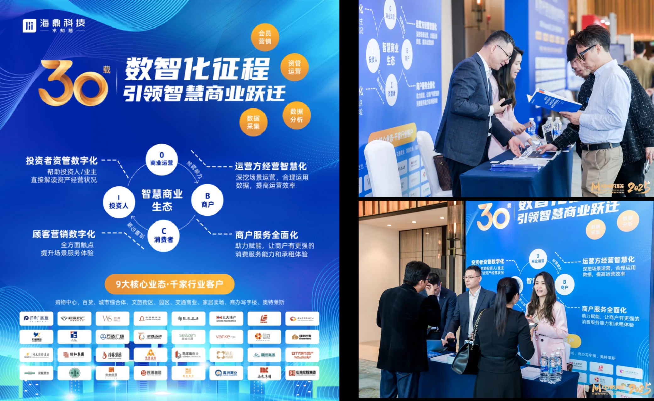 2025年3月26日,由中購聯(lián)(Mall China)主辦的?第十一屆中國商業(yè)地產(chǎn)行業(yè)新年論壇暨乙巳春茗晚會?在深圳南山中洲萬豪酒店盛大啟幕。本屆論壇以“向新聚勢 無界增長”為主題,匯聚行業(yè)領(lǐng)袖、專家學(xué)者及頭部企業(yè)代表,共探商業(yè)地產(chǎn)破局新路徑。作為中購聯(lián)戰(zhàn)略合作伙伴,?海鼎科技深度參與了本次大會,全方位分享了當(dāng)下行業(yè)智慧商業(yè)高速發(fā)展的標(biāo)桿價(jià)值。
