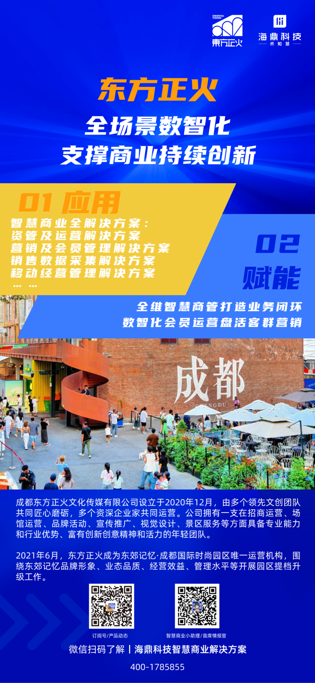 成都東方正火文化傳媒有限公司攜手海鼎科技,在其所運(yùn)營(yíng)的東郊記憶項(xiàng)目中,應(yīng)用落地了包含資管及運(yùn)營(yíng)解決方案、營(yíng)銷及會(huì)員管理解決方案、銷售數(shù)據(jù)采集解決方案、移動(dòng)經(jīng)營(yíng)管理解決方案等產(chǎn)品方案在內(nèi)的海鼎科技智慧商業(yè)全解決方案。