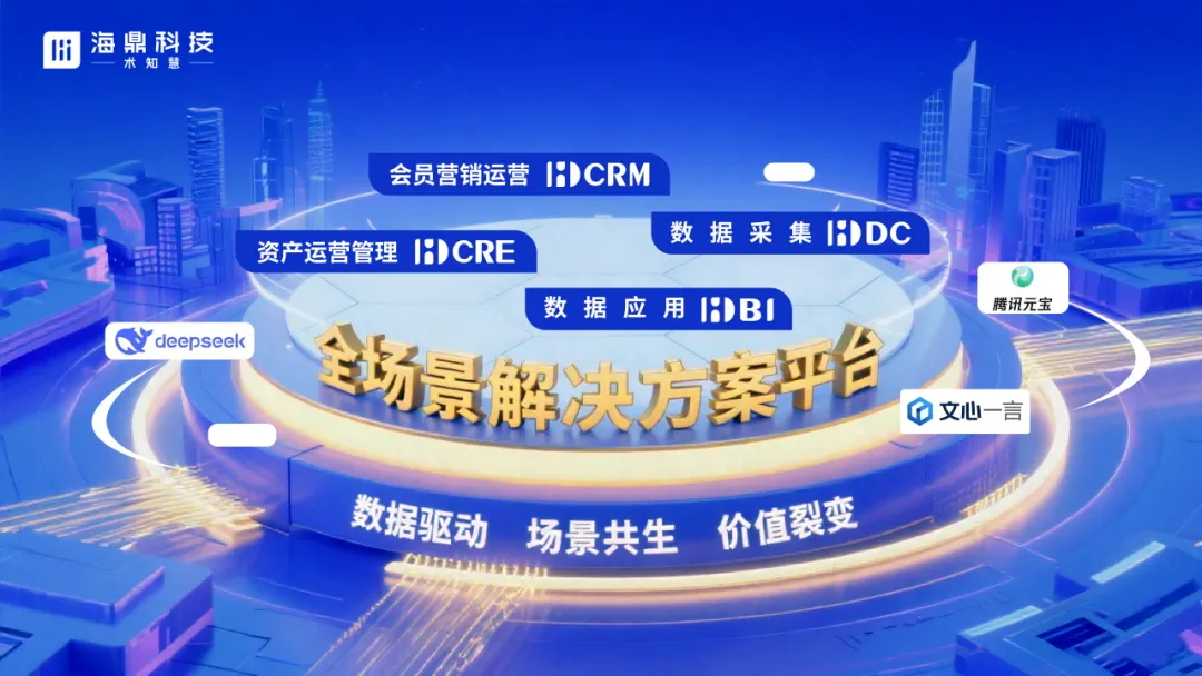 海鼎科技自主研發(fā)的數(shù)智化全場景解決方案平臺,在整合DeepSeek、騰訊元寶、文心一言等主流AI大模型的同時,結(jié)合海鼎科技智慧商業(yè)知識體系匹配調(diào)整,精準(zhǔn)度較通用模型提升30%,為資產(chǎn)運營管理(HDCRE)、會員營銷運營(HDCRM)、數(shù)據(jù)應(yīng)用(HDBI)、數(shù)據(jù)采集(HDDC)等核心產(chǎn)品方案注入“AI智腦”支撐,推動商業(yè)地產(chǎn)從傳統(tǒng)空間租賃管理模式向“數(shù)據(jù)驅(qū)動、場景共生、價值裂變”智慧生態(tài)進(jìn)化。