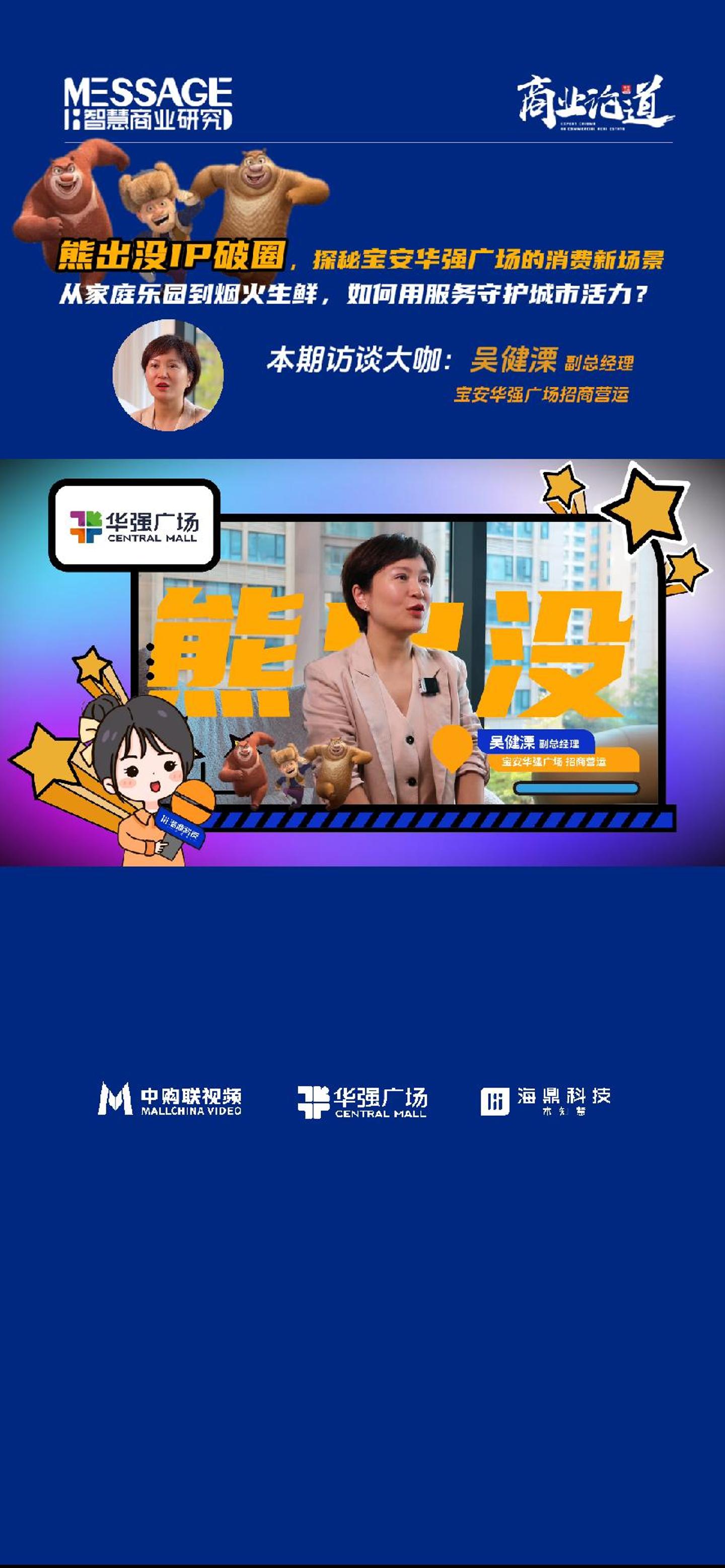 ??「熊出沒(méi)IP破圈,探秘寶安華強(qiáng)廣場(chǎng)的消費(fèi)新場(chǎng)景」[讓我看看] ??從家庭樂(lè)園到煙火生鮮,如何用服務(wù)守護(hù)城市活力?[疑問(wèn)] [慶祝]本期訪談大咖:吳健溧 寶安華強(qiáng)廣場(chǎng)招商營(yíng)運(yùn)副總經(jīng)理