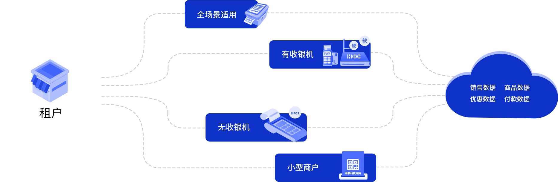 首先通過對智能POS + 海鼎數(shù)據(jù)通(軟件/硬件) + 支付碼 + 移動數(shù)據(jù)上報 + 數(shù)據(jù)接口等多樣化數(shù)據(jù)采集方式的靈活結(jié)合,實現(xiàn)多業(yè)態(tài)及復(fù)雜業(yè)務(wù)場景的銷售數(shù)據(jù)全面采集。其次通過對數(shù)據(jù)質(zhì)量、共享、資產(chǎn)及安全管理實現(xiàn)數(shù)據(jù)有效治理,從而實現(xiàn)商戶銷售監(jiān)控、會員體系完善、商業(yè)職能分析電子化及金融服務(wù)數(shù)據(jù)支撐。